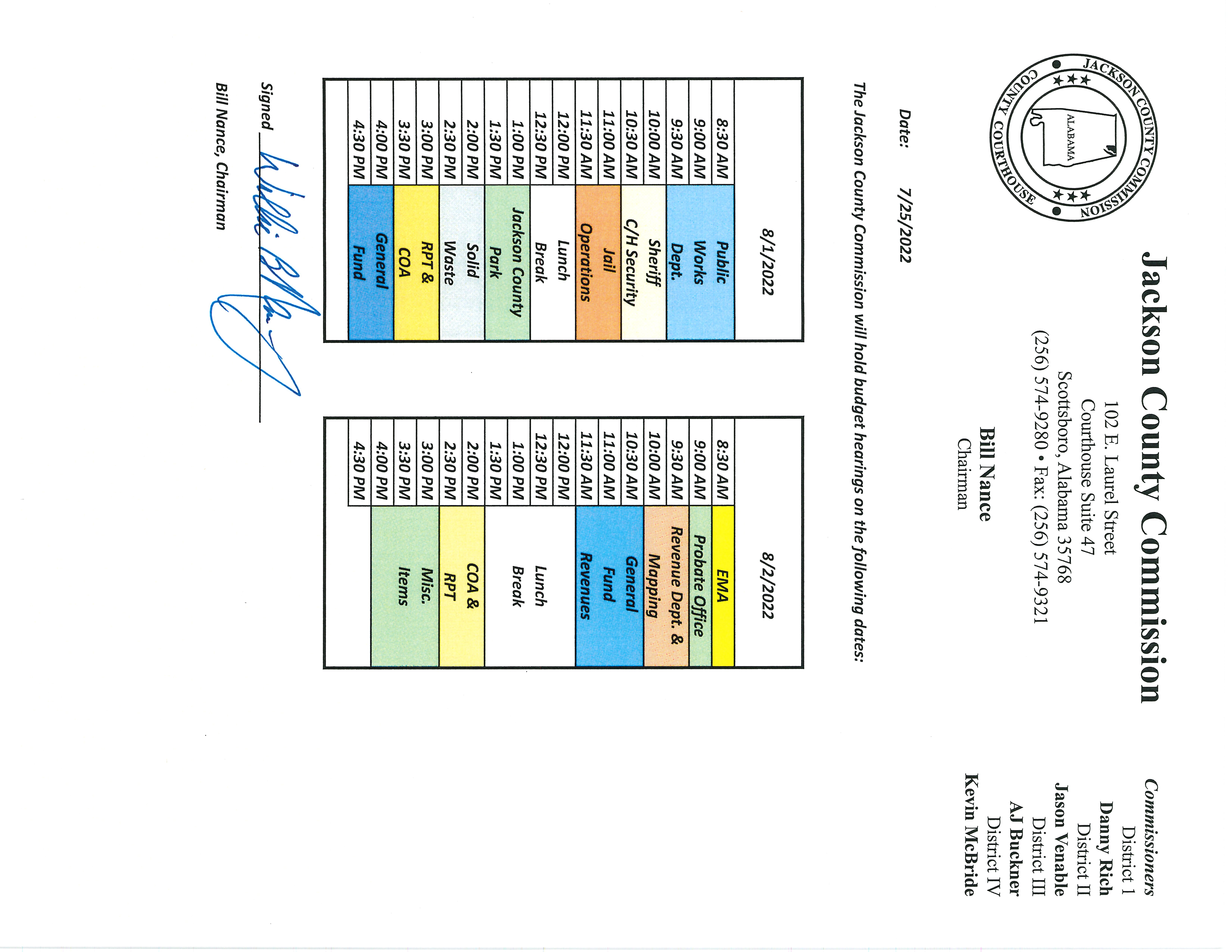 The Jackson County Commission will be conducting budget hearings for the new fiscal year.