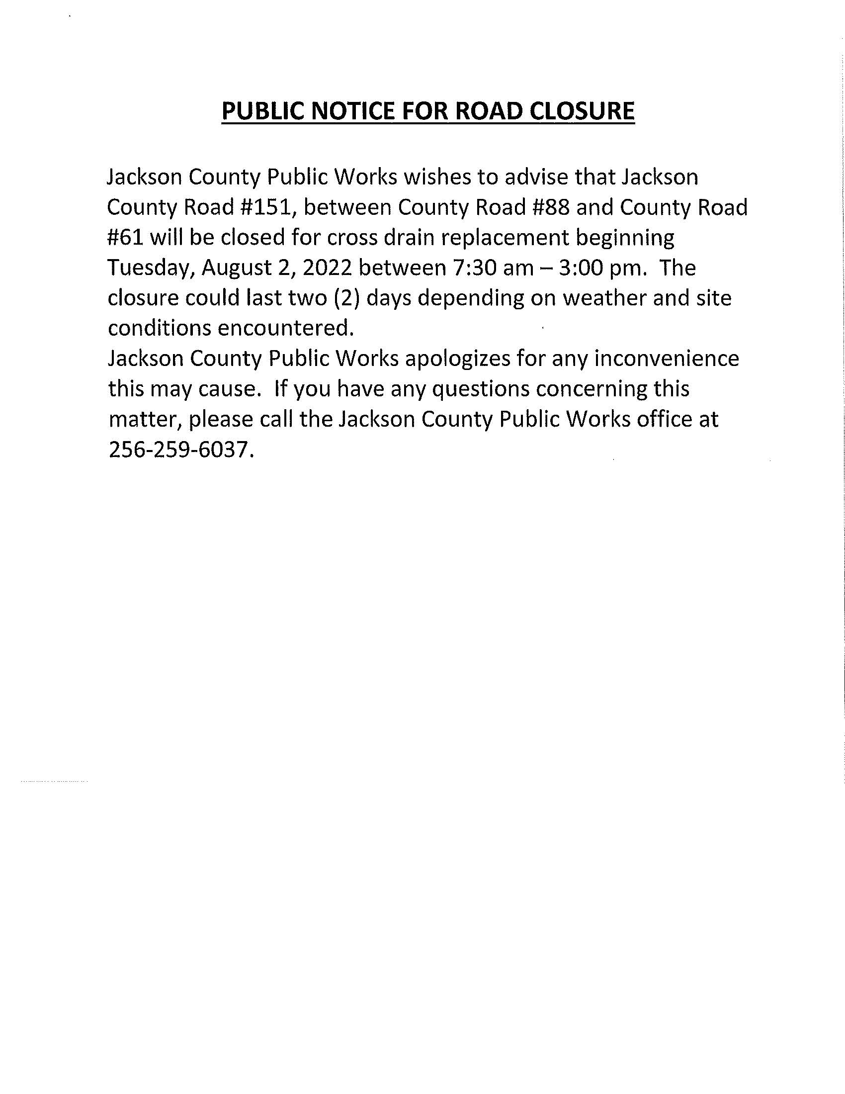 County Road 151 Road Closure