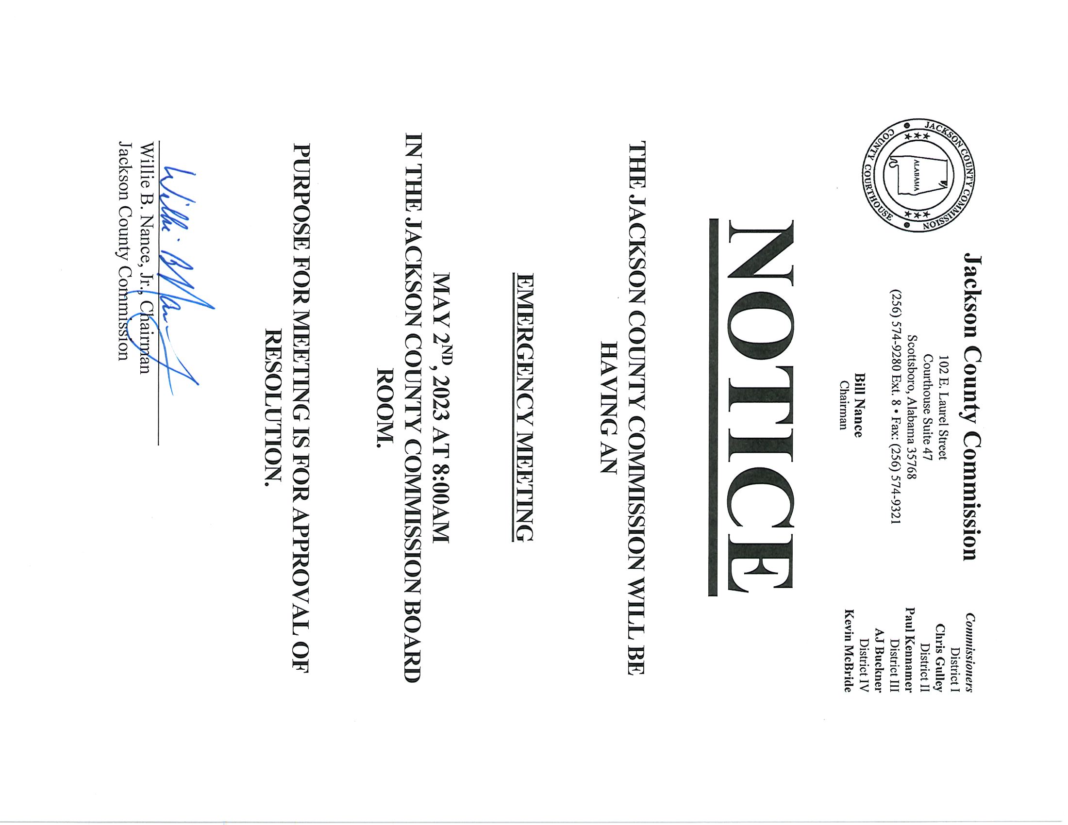 This notice serves as the agenda.