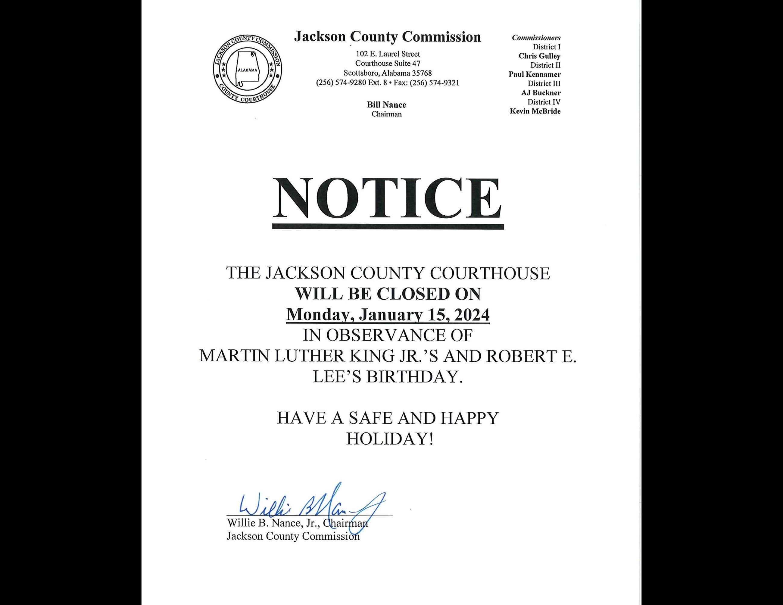 MLK and Robert E. Lee's Birthday Courthouse Closure
