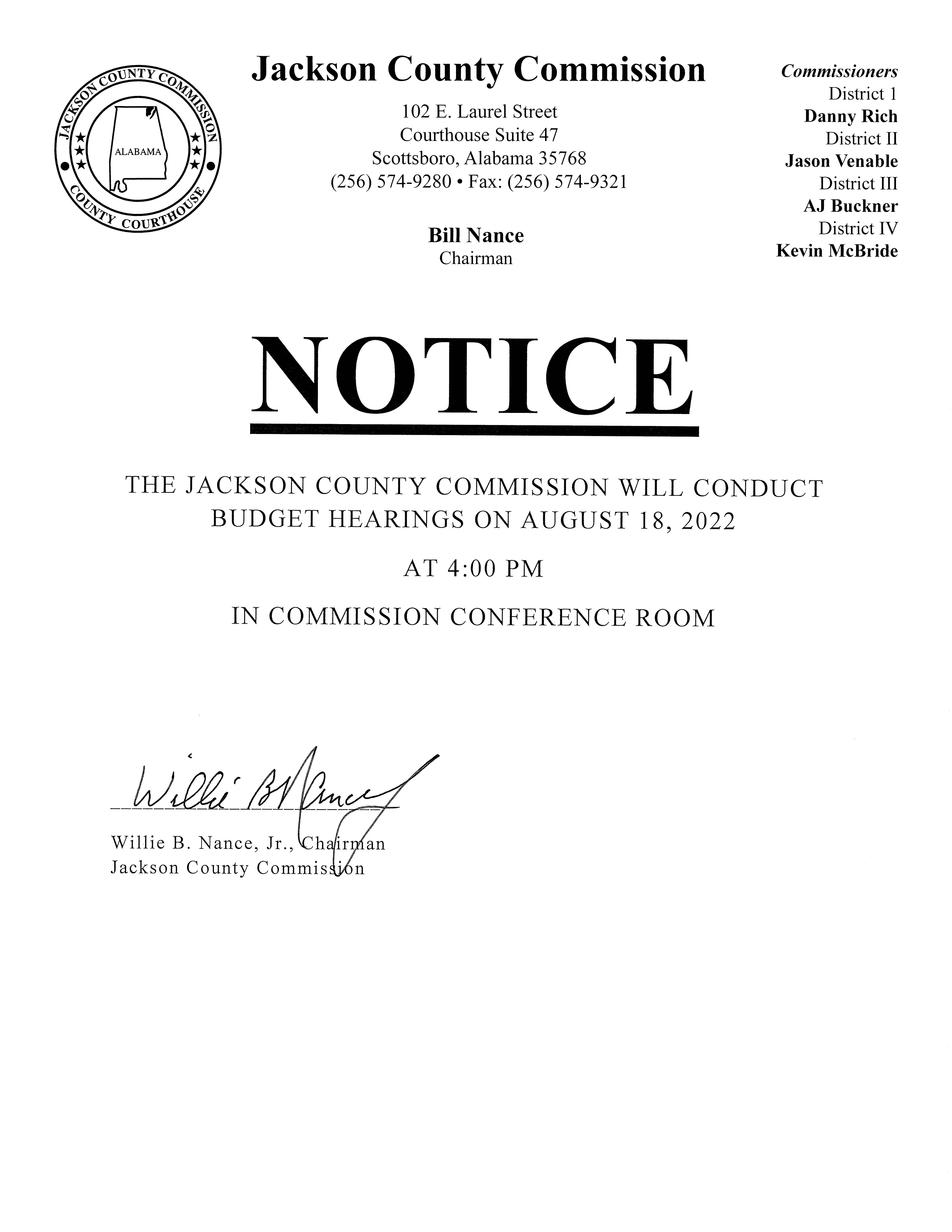 The Jackson County Commission will be conducting budget hearings for the new fiscal year.