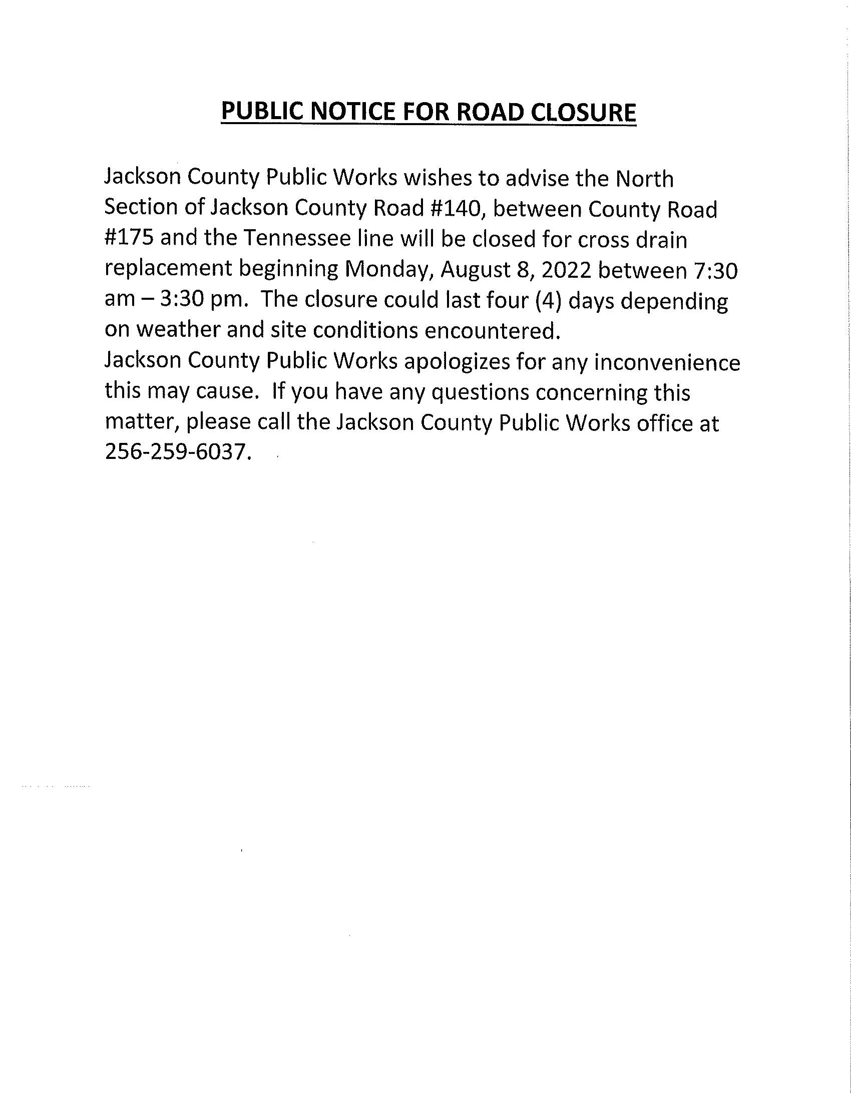 County Road 140 Road Closure